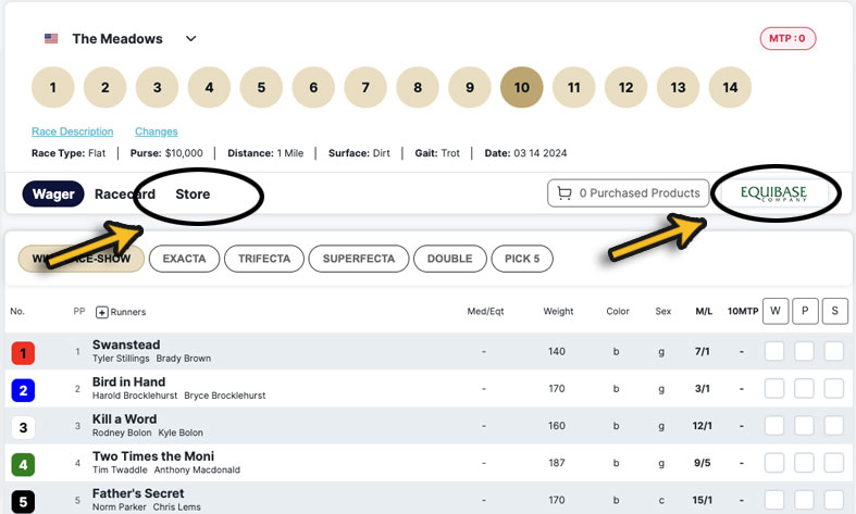 When handicapping products are available they will be shown under the track information on the Bet Pad and in the Store tab. Only products for today's action are available outside the Store tab.